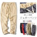 リネンパンツ メンズ 綿麻パンツ テーパードパンツ 無地 夏物 ボトムス イージーパンツ 麻パンツ リブパンツ