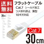 LANケーブル フラット CAT7 0.3m (30cm) 10ギガ対応 シールドケーブル ツメ折れ防止 薄型 金めっきコネクタ ホワイト